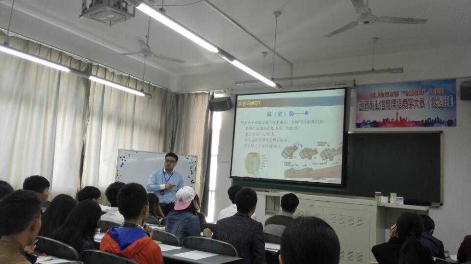 本次大赛设置了教案、课件初审和现场授课两个环节。来自全川从事创新创业指导课程教学的34名教师通过教案和课件初审抵达决赛现场。在为期3天的比赛中,参赛选手围绕“创新创业”这个主题,分为现场讲授、案例讲解、专家提问三个环节进行了赛课。我院教师许凯选取了“用SWOT分析法检验企业想法”这一主题,结合理论讲授与案例分析、小组讨论与角色体验,运用多媒体教学手段,生动、准确地为比赛现场的师生、评委献上了一场富有激情的创业指导课,博得评委和听课学生的一致好评,并最终获得二等奖。