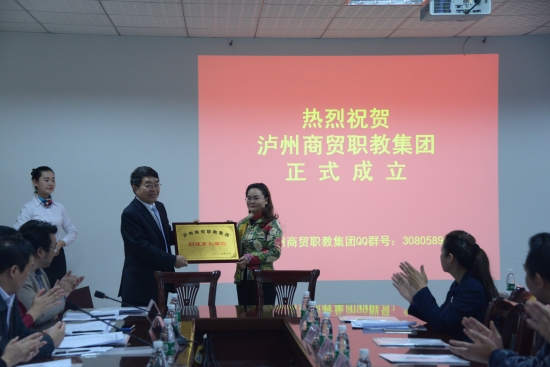 下午15:30,泸州商贸职教集团成立大会正式召开,会议由泸州职业技术学院副院长徐波主持。市教育局副局长赖红艳宣读了市教育局同意成立泸州商贸职教集团的批复。泸州职业技术学院副院长徐波宣读了预备会审议通过的泸州商贸职教集团理事机构和人员名单。市教育局赖红艳副局长为集团授牌。商务局副局长崔斌为理事长单位授牌。集团首任理事长贺元成为副理事长单位授牌,为名誉理事长、名誉副理事长颁发聘书。