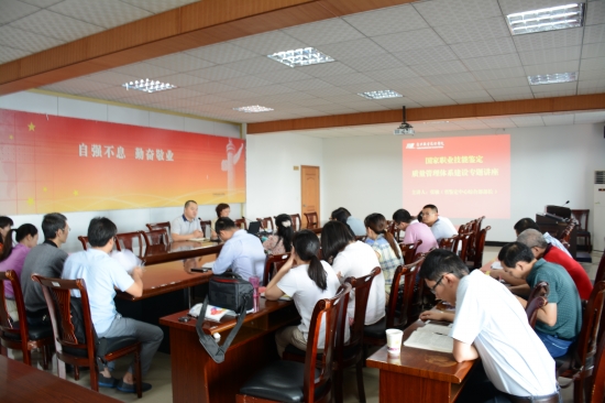 本站讯(信息来源:泸州技师学院办公室)2015年8月28日上午,学院在行政楼六楼开展职业技能鉴定机构质量管理体系建设专题讲座,特邀请省职业技能鉴定指导中心综合部部长张敏主讲。机械系、电子系、建筑系、信息系、白酒学院负责人、实训中心主任、技能鉴定考评员及质量体系认证办公室成员参加讲座。