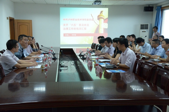 在检查验收汇报会上,学院党委书记代华龙从学院基本情况、“六五”普法统筹目标、组织保障、工作机制、法治宣传教育与法治文化建设、制度建设与依法治理、突出成效与特色等方面作了全面汇报。