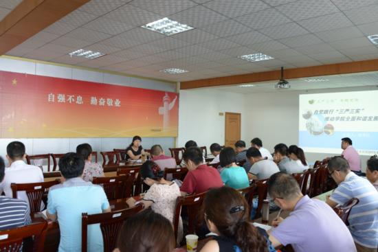 周学红传达了学院党委关于扎实开展“三严三实”专题教育的有关精神与安排,详细讲解了“三严三实”的基本内涵,强调了开展“三严三实”专题教育的重要意义。