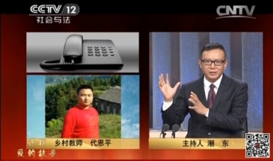 本站讯(信息来源:宣传统战部)12月5日,中央电视台CCTV-12频道于中午11:59-12:39时段《热线》“善行2014”特别节目中播出了我院06届小学数学教育专业毕业生、叙永县教师代恩平的事迹。