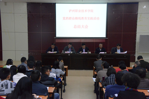 本站讯(信息来源:党的群众路线教育实践活动领导小组办公室)2014年10月15日下午4点,泸州职业技术学院党的群众路线教育实践活动总结大会在求实厅召开。市委第七督导组组长贺维同志、副组长齐林同志等督导组成员,市教育局局长刘涛同志出席会议。学院党委书记、党的群众路线教育实践活动领导小组组长代华龙同志作总结报告。党委副书记、院长贺元成主持会议。全体干部、教师代表、群众代表、学生党员代表参加了会议。