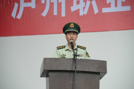随后武警泸州市支队队长薛军强上校发表讲话,薛军强上校强调了军训对于大学生的重要性,他说军训不仅让同学了解我国国防军队的建设,了解军队的各种优良作风,更让同学们体验军人不怕苦、不怕累的艰苦作风。在军训中端正思想意识,增强安全意识,是大学新生的第一堂必修课。