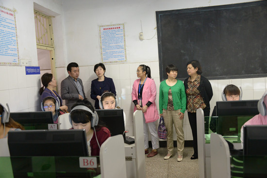 检查组一行在彭涛副院长的陪同下,首先考察了学院外语系语音实训室,并就学院下半年将要开展的计算机辅助普通话水平测试工作进行了交流指导,认为学院的“机测”条件已经具备,可以启动并实施该项工作。调研检查组还查阅了我院历年普通话水平测试工作资料,并与学院负责语言文字工作的相关负责人和测试员进行了座谈。
