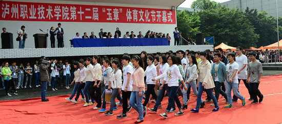 最后,随着代华龙书记铿锵有力地宣布“泸州职业技术学院第十二届‘玉章’体育文化节开幕”,整个运动场,欢声雷动,各项比赛正式开始。