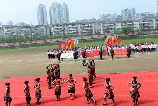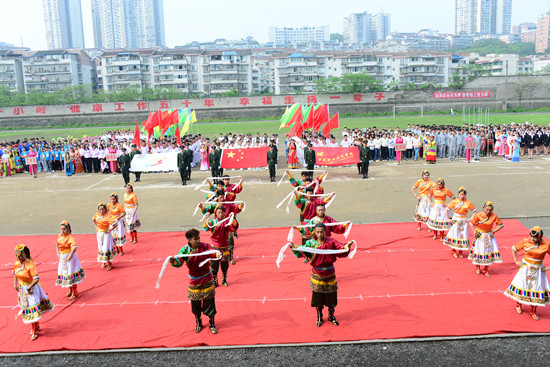 青海师范大学泸州校区运动员入场以及代表的民族文艺表演
