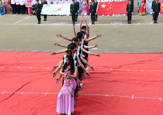 志愿者队入场以及代表56个民族的文艺演出