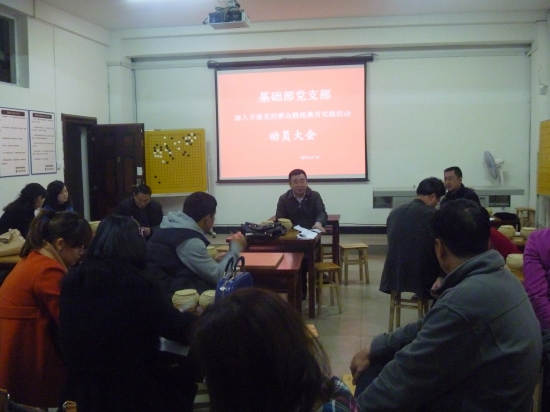 本站讯(信息来源:基础部) 为扎实推进党的群众路线教育实践活动的开展,切实有效地将此项活动与基础部工作、教学实际紧密联系起来,把活动抓紧抓好抓出成效,3月14日下午3点,基础部在四教楼负一楼召开党的群众路线教育实践活动动员大会,对活动进行安排部署。学院党的群众路线教育实践活动领导组组长、党委书记代华龙到会指导工作,党群活动督导组第一组组长、监审处处长曾国峰及基础部全体教师参加会议。