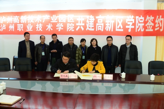 在泸州市“六个突破,四年翻番”发展战略中,职业教育将为泸州地方企业提供重要的人才和智力支持,为此,泸州市政府专门出台多个文件有力促进了我院与泸州各园区在合作办学、共建实训基地和共同技术研发等方面合作。2014年1月,泸州市人民政府下发《关于同意共建泸州职业技术学院高新区学院的批复》,同意由我院与泸州高新技术产业园区管委会共建泸州职业技术学院高新区学院。