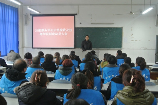 12月12日下午,徐波副院长参加了后勤服务中心在4105教室召开的示范建设验收及技师学院创建动员会议。后勤全体非编员工参会。后勤中心副主任(主持工作)杨俊主持会议。