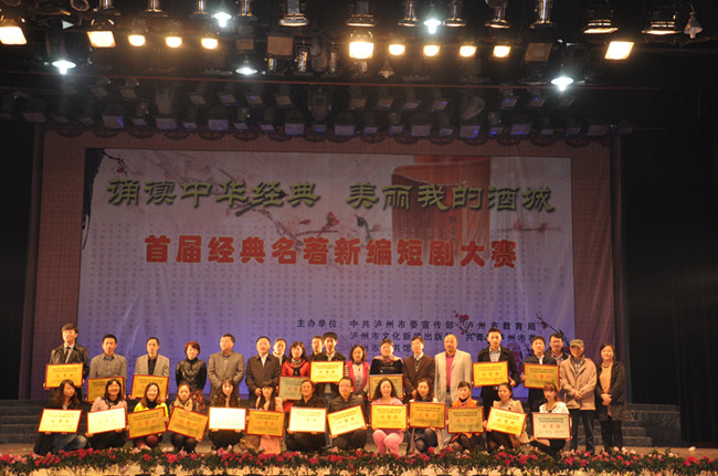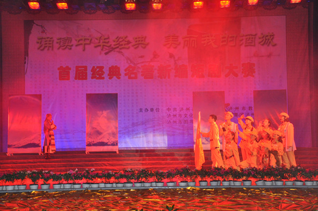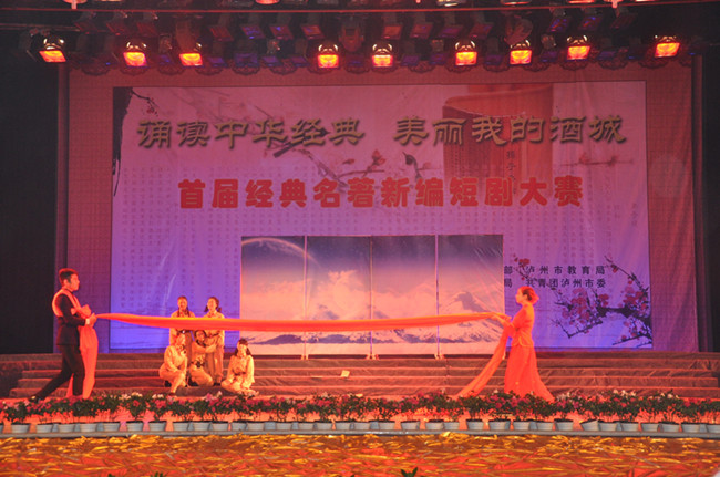 本站讯(信息来源:团委)近日,由泸州市委宣传部、市教育局、市文新出版局、团市委、图书馆主办的“诵读中华经典•美丽我的酒城”首届经典名著新编短剧大赛在江阳艺术宫隆重举行。比赛分大学组、中学组和小学组三个组别进行,来自全市包括我院在内的21支参赛队伍展开角逐。市委常委、市委宣传部部长鞠丽在现场观看比赛。