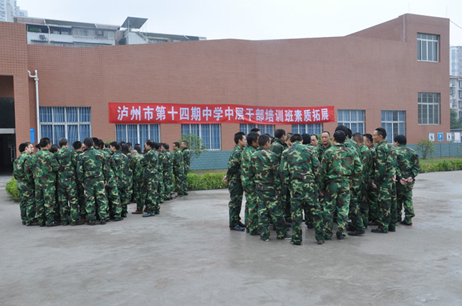 本站讯(信息来源:学生处、团委) 近日,泸州市第十四期中学中层干部培训班在我院开班,学院素质拓展中心对该班全体学员进行了拓展培训。