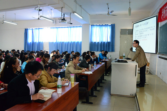 本站讯(信息来源:科技处) 10月23日下午,我院经纬讲坛2013年11月讲座在4601教室举行,由我院人文社科系教师朱路昕主讲《庄子的境界》。学院各系师生代表一百余人到会聆听了讲座。