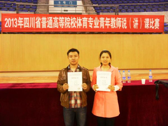 本站讯(信息来源:基础部) 10月25-26日,由省教厅举办的2013年四川省普通高等院校体育专业青年教师说课比赛在四川理工学院隆重举行,我院基础部体育教研室教师黄文杰、黄刚分别喜获二等奖和三等奖。