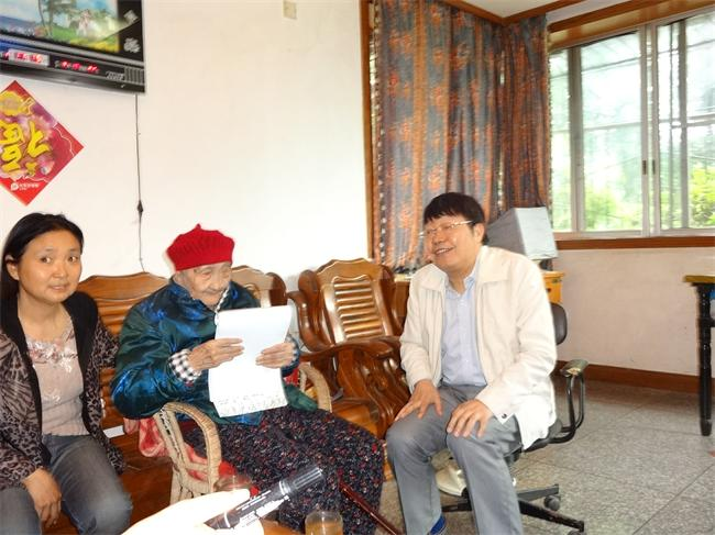 10月21日上午 ,学院院长贺元成带领离退休处相关同志,看望慰问了今年96岁高龄的学院离休老干部王正蓉同志,向她表达了节日的问候和真诚的祝福,并送去慰问金。