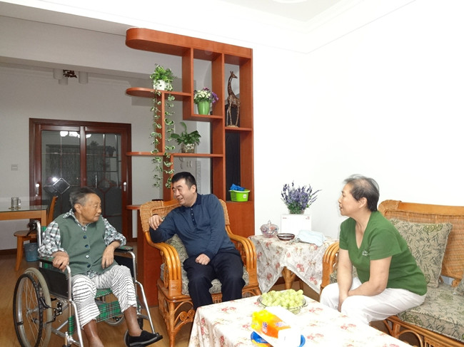 在李朝淑老师家中,代华龙书记与李老师亲切握手,表示代表学院党政来看望她,向她致以节日的亲切问候和美好祝福,并把慰问金送到李老师手上。代华龙书记详细询问了李老师的生活情况和身体状况,叮嘱李老师的女儿照顾好妈妈,有什么困难,及时向学院反映,同时要求学院离退休处尽最大力量为老同志提供服务和方便,让老同志安度晚年。