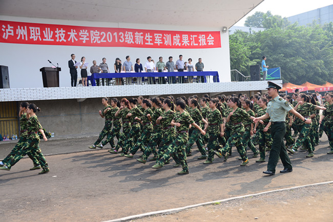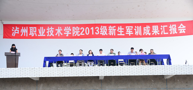 本站讯(信息来源:学生处) 9月15日下午,学院2013级新生军训成果汇报会在学院运动场隆重举行。驻泸某部队副参谋长李刚以及学院院长贺元成、副院长邓安容、副院长彭涛、副院长徐波、院长助理张直明出席汇报会。出席汇报会的还有军训教官和学院相关职能部门、教学系部(院)负责人。汇报会由学院党委副书记张爽主持。