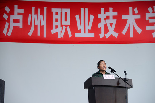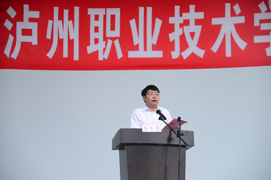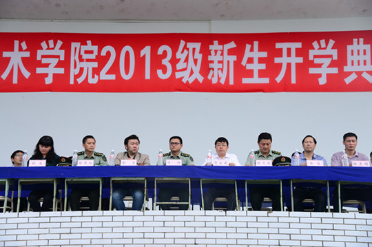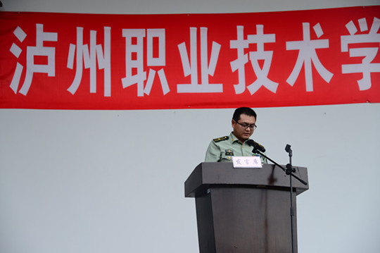 本站讯(信息来源:学生处) 9月9日下午3点,学院2013级新生开学典礼暨军训开营仪式在学院足球场隆重举行。泸州市作训办主任杨茂斌,驻泸某部队副参谋长李刚、驻泸某部队连长鄢伟林以及学院院长贺元成、副院长彭涛、党委副书记张爽、副院长徐波、院长助理张直明等出席仪式。出席仪式的还有学院相关职能部门、教学系部(院)负责人。学院党委副书记张爽主持仪式。