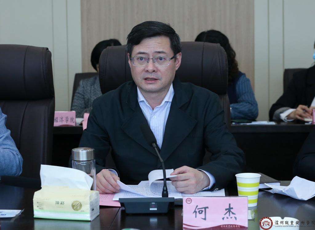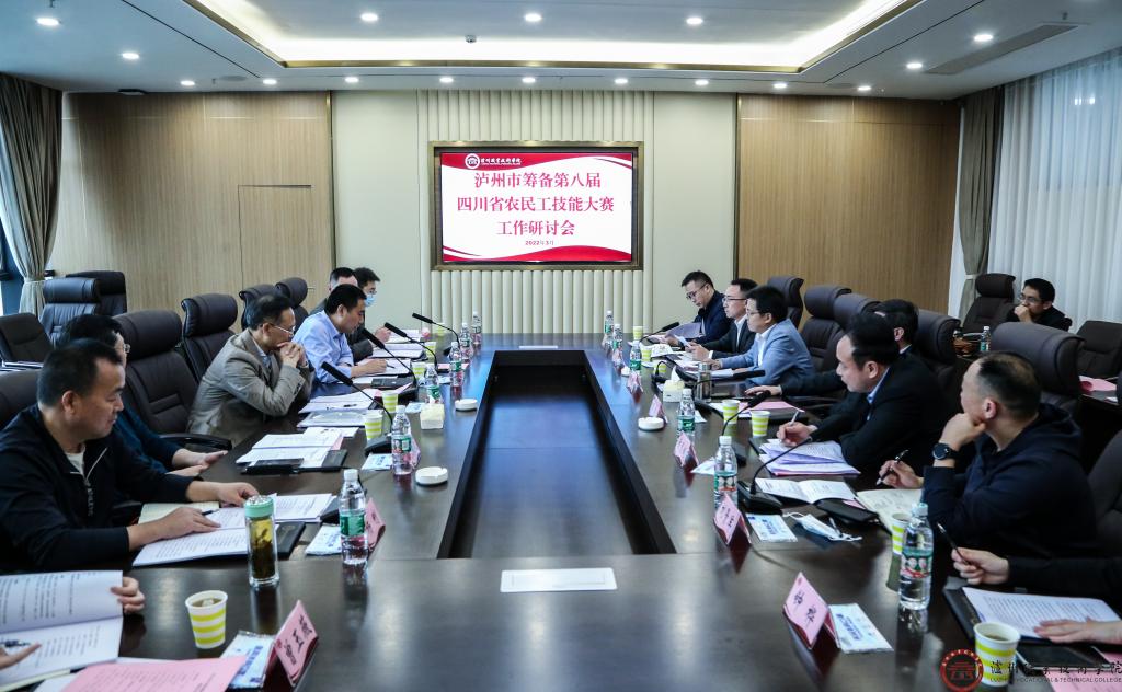 3月30日下午,泸州市筹备第八届四川省农民工技能大赛工作研讨会在我校召开。省人力资源和社会保障厅二级巡视员孙智明,省农民工服务中心主任张凯钇,泸州市人力资源和社会保障局党组成员、副局长黄烈超,我校党委书记何杰,党委常委、副院长熊剑出席会议。会议由省人力资源和社会保障厅农民工工作处处长、一级调研员侯明主持。
