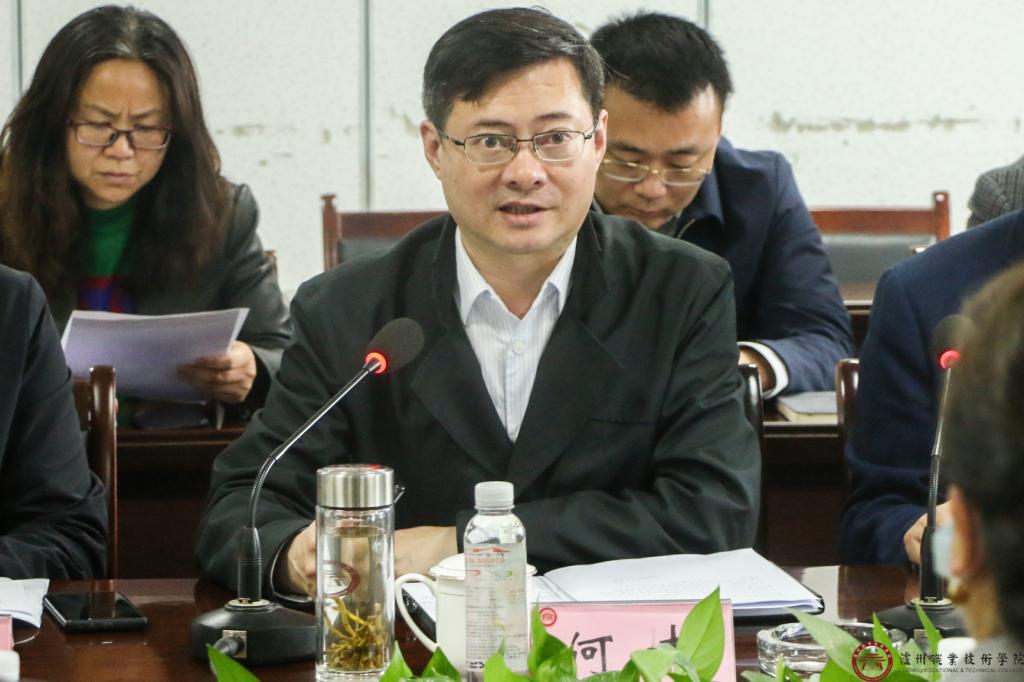 座谈会上,谢鸿全介绍了学校集团化办学体制、基础设施升级、创新内生性产教融合育人模式、加强高水平师资队伍建设、提升学生综合素质、融入区域经济发展等方面情况。