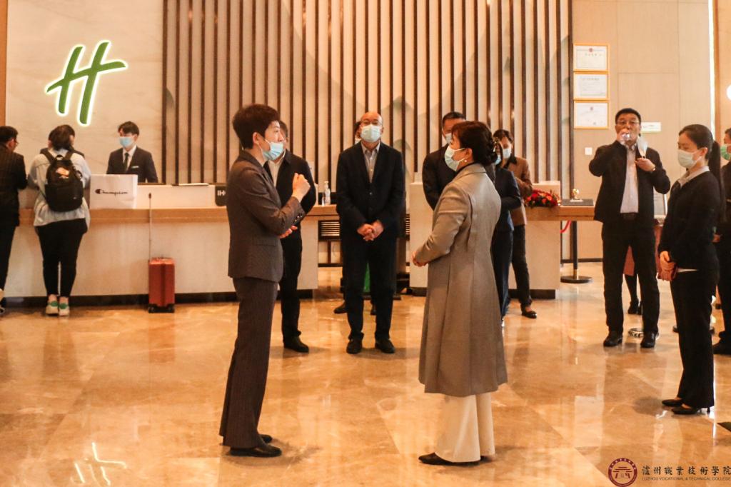 会前,马宗慧一行参观了家教家风馆、泸菜博物馆,以及龙涧假日酒店、经纬诺博幼儿园、天猫超市、菜鸟驿站等学校产教融合实训基地。