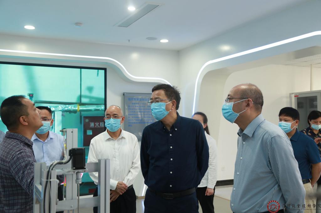 陈景强一行参观了我校退役军人服务站、学校一站式服务大厅和退役军人郑钰琪博士团队研发平台。陈景强对我校退役军人优待政策、学生全方位服务保障、双带头人班课程设置及师资配置等给予了高度评价。