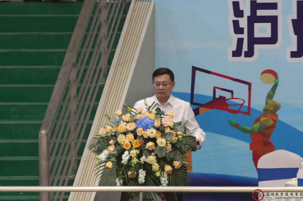 谢鸿全在致辞中指出,学校高度重视体育教育,大力支持体育竞技类社团的建设,定期举办各类体育竞赛,各二级学院分别建立足球、篮球、排球等运动队并进行班级、院级、校级对抗赛,坚持落实文体活动全覆盖,使同学们在体育锻炼中强健体魄,绽放精彩。希望全体运动员奋力拼搏,勇创佳绩,展现朝气蓬勃、昂扬向上的青春风采,尽情享受运动的快乐和成功的喜悦!