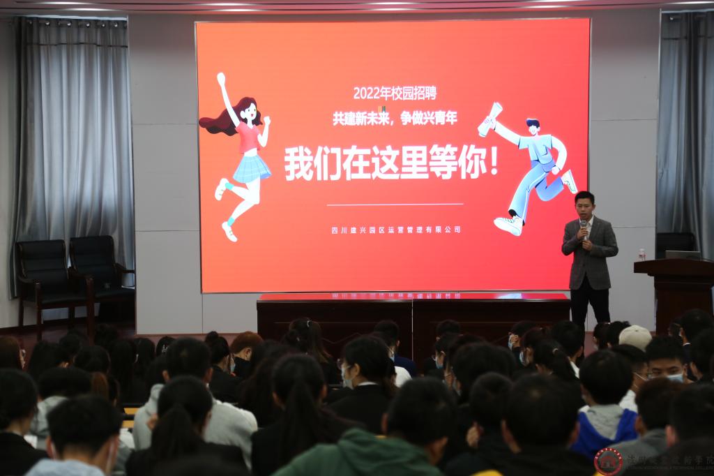 本次会议还举行了校企集中签约仪式、2022年四川经纬职业教育集团年会,并将同步举行职教集团成员单位大型招聘会,42家专业对口优质企业为学生提供了1730个就业岗位,其中国企或上市公司30家,包括四川郎酒集团有限责任公司、腾讯云计算(北京)有限责任公司、中慧云启科技集团有限公司、京东方科技集团股份有限公司、杭州海康威视科技有限公司、四川长虹电器股份有限公司、重庆海尔有限公司、四川顺丰速运有限公司等,就业地点覆盖北京、上海、南京、重庆、成都等一线城市。截至目前,学校已举行专场招聘会60余场,共提供4000余个岗位,达成签约意向学生2000余人,助力毕业生高质量就业。