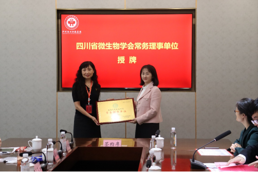 会上,四川省微生物学会授予我校为“四川省微生物学会常务理事单位”,同时四川省微生物学会理事长孙群受聘为我校酿酒技术专业(群)建设指导委员会主任委员。