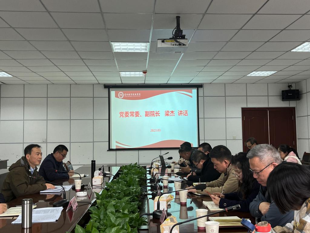 梁杰就推进各民主党派、统战团体建设作了强调,一是强化思想引领,提高政治站位,深入学习领会党的二十大精神和习近平总书记关于做好新时代党的统一战线工作的重要思想,把握好统战工作新形势新任务新要求;二是积极发挥作用,服务中心大局,联系泸州西部工匠城建设、学校“双高”建设等中心大局,多思想、多谋划、多融入、多创新,发挥好民主党派和统战团体人才优势、智力优势、资源优势,努力贡献作为;三是加强组织建设,提升能力素质,加强学习培训,提升参政议政能力,加强调查研究,高质量建言献策,加强团队建设、平台建设和特色活动开展,以品牌打造和突出作为助力统战工作高质量发展。