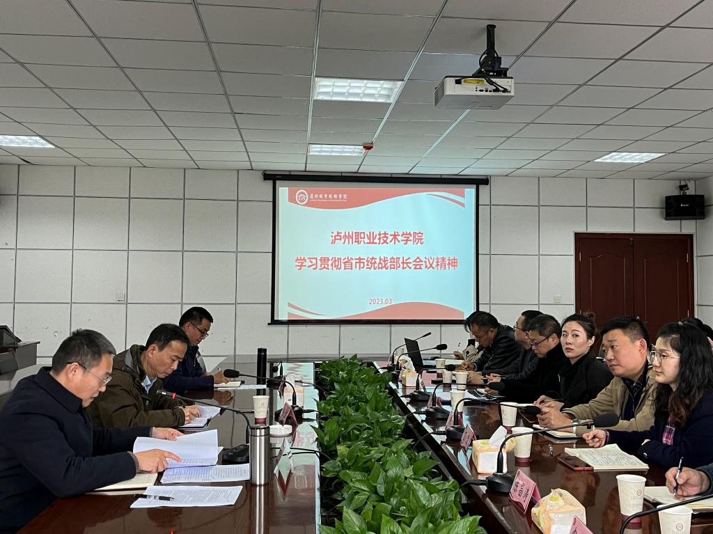曾国锋传达了中央、省、市统战部长会议精神,结合实际就学校2023年统战工作路线图和抓手作了阐明,强调要深入学习贯彻落实习近平总书记关于做好新时代党的统一战线工作的重要思想,坚持“四心”工作定位,把握团结奋斗的时代主题,紧扣全市统战工作“高质量发展攻坚年”和学校“双高”建设冲刺年工作主题,坚持“4321”工作法和“四强化四提升”要求,强化“大党建、大统战、统战之家、统战+”理念和“铸魂、强基、赋能、提质、创品”提升链,进一步完善大统战工作格局,推动统战工作强化铸魂弘业、提质增效;要持续实施好“1+1+1”模式、深化“6个1”活动、开展“四个结合、四点融入”研讨、打造“三名”工程,促进各民主党派、统战团体和党外知识分子队伍提内涵、强素质、铸品牌;要强化落实学校“3455”工程,提升在服务学校“双高”建设、泸州新时代区域中心城市建设等中心大局工作中的参与度、贡献度,以中国式现代化引领统战工作高质量发展。