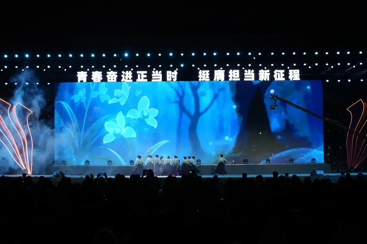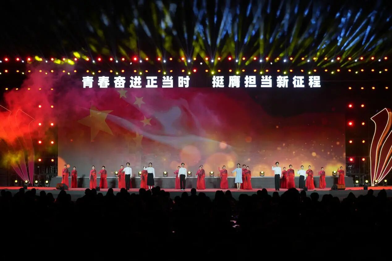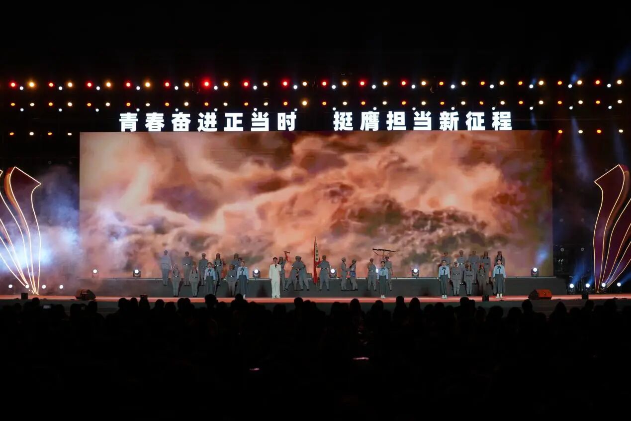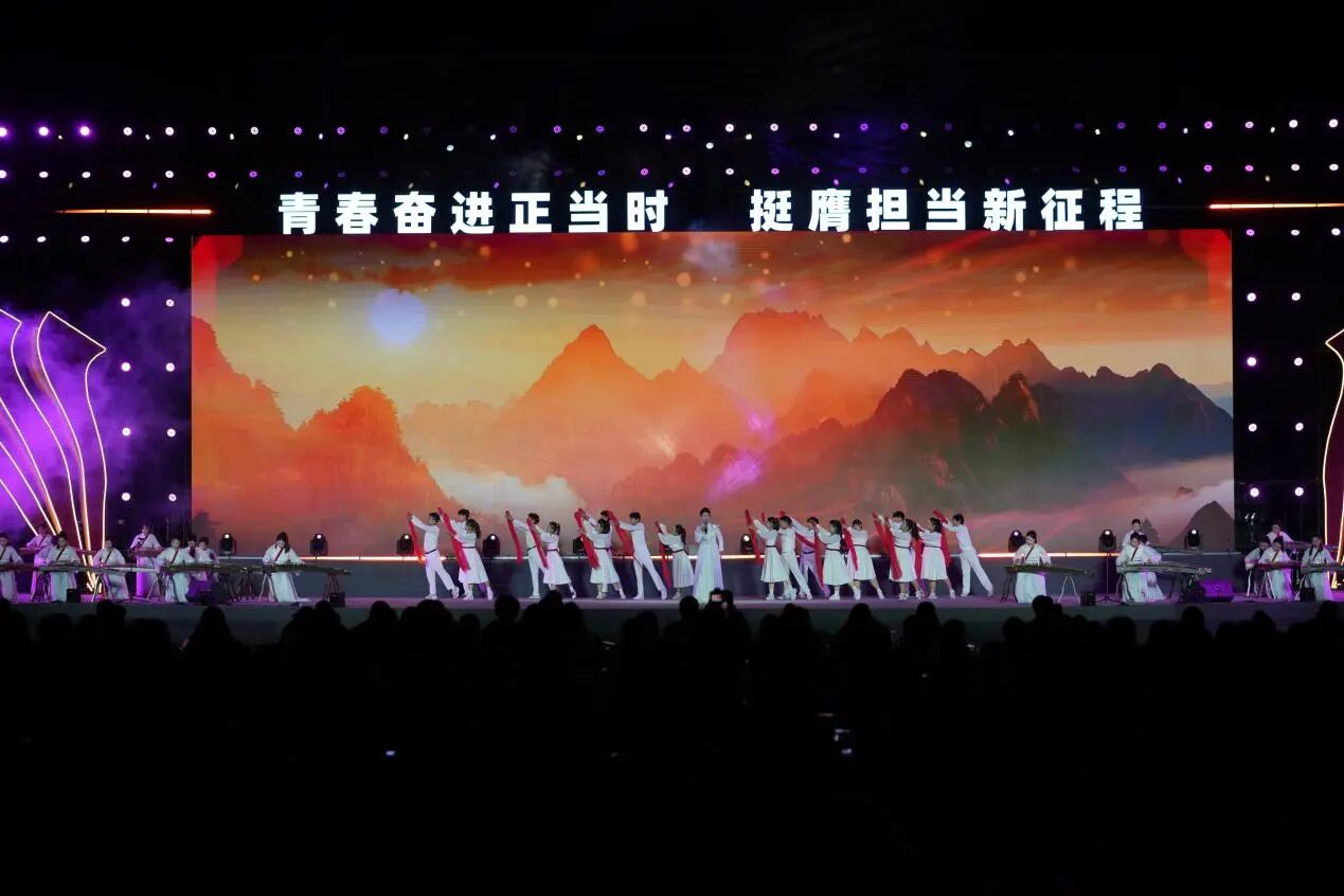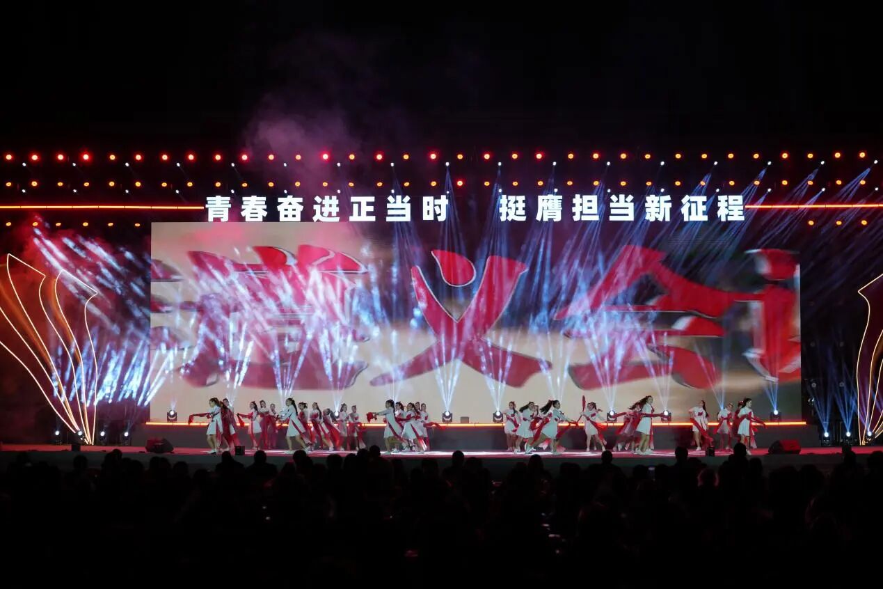 开幕式文艺展演分为忠山序章、烽火红韵、青春逐光、筑梦新途四个篇章,重庆市有关区县团委、泸州市各区县团委、泸州市大中学校依次入场展示,文艺展演涵盖诗歌朗诵、歌舞表演、戏剧表演等多元形式,其中包括全国第二十届“群星奖”、四川省第十届大学生艺术节展演一等奖等优质作品,当青春风采与家国情怀有机融合,忠山人文之韵、革命精神之壮、青春奋进之姿与时代筑梦之美呈现的淋漓尽致。