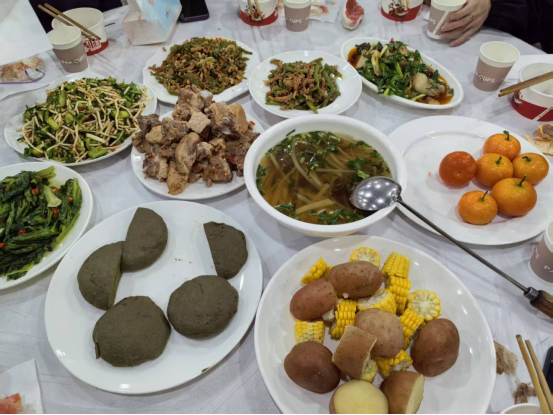 活动当天,校园一隅充满了浓厚的彝族风情。彝族同学们亲自参与,烹饪坨坨肉、荞面馍、酸菜汤等彝族传统佳肴,与老师和同学们一起分享,共庆彝族年。