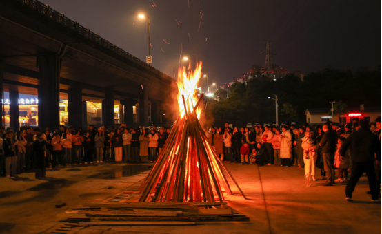 当夜幕降临,活动的高潮——篝火晚会热烈开启。熊熊燃起的篝火,不仅照亮了夜空,更点燃了每一位在场师生心中的热情。彝族同学们身着绚丽的民族服饰,围着篝火跳起了欢快的达体舞。他们热情地邀请在场的师生加入舞队,手拉手,肩并肩,歌声、笑声、脚步声汇成一片欢乐的海洋。这一刻,语言和民族的界限被打破,唯有真挚的情谊与对美好生活的共同向往在火光中交融升华。