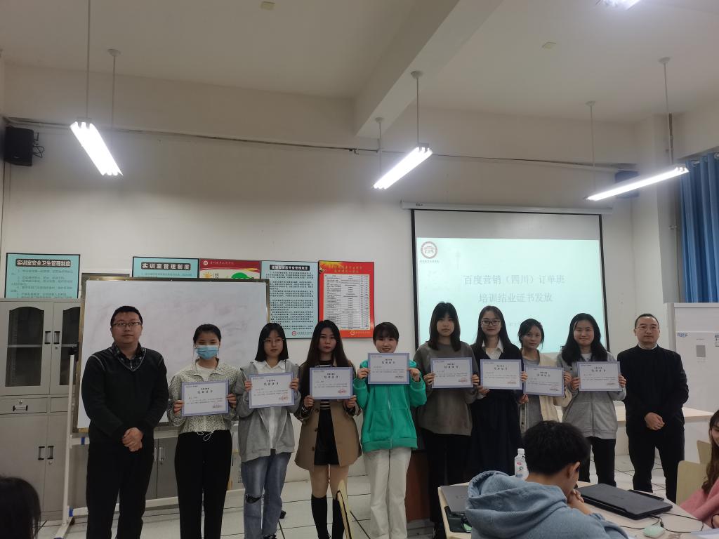 “百度订单班”是我院电子商务专业的重点校企合作项目,至今已开展了七届,由企业培训师全程授课,校方教师辅助管理方式进行。订单班旨在通过专项实战训练,提升学生就业竞争力;通过校企深度合作,增强专业的行业融入度,提高专业影响力和人才培养质量。