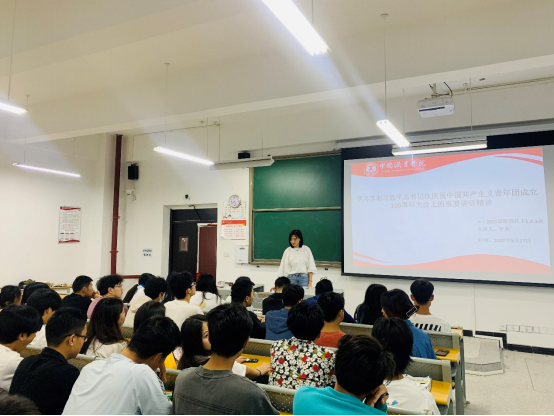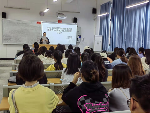 在班会中,各班辅导员带领同学们一起认真学习《习近平总书记在庆祝中国共产主义青年团成立100周年大会上的重要讲话》,对讲话中重要内容做了详细讲解,并要求同学们要认真学习,认真领会,认真践行讲话精神。习近平总书记的重要讲话精神引发了学生的热烈反响,大家积极讨论,分享自己的学习心得。