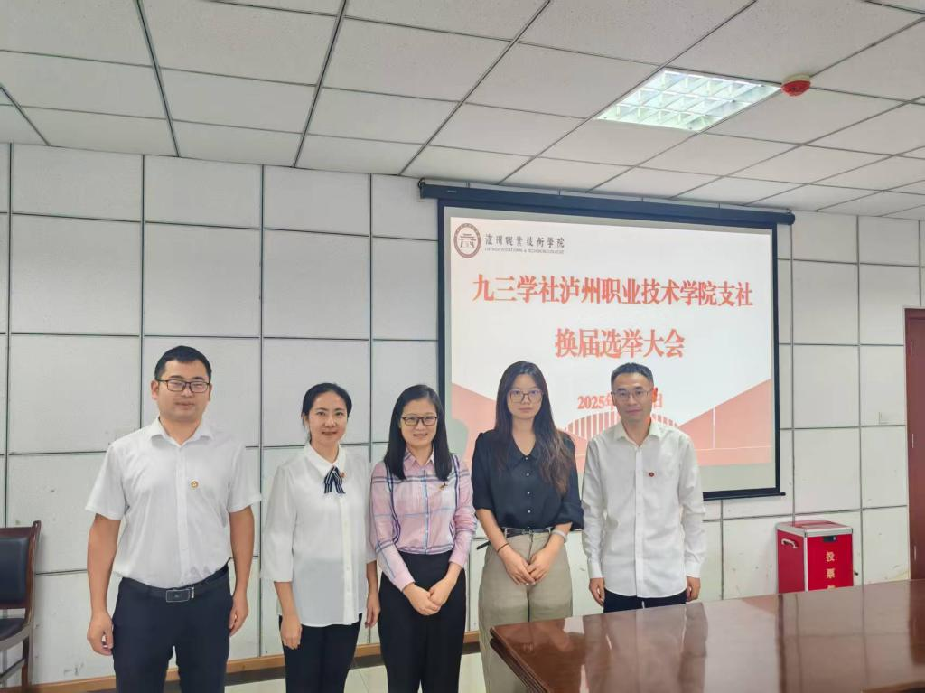 9月29日,九三学社泸州职业技术学院支社召开换届选举大会。九三学社泸州市委员会专职副主委兼秘书长邓明聪,九三学社泸州市委员会四级调研员张利彬,泸州职业技术学院党委常委、副院长梁杰,党委常委、统战部部长洪兴华出席会议。