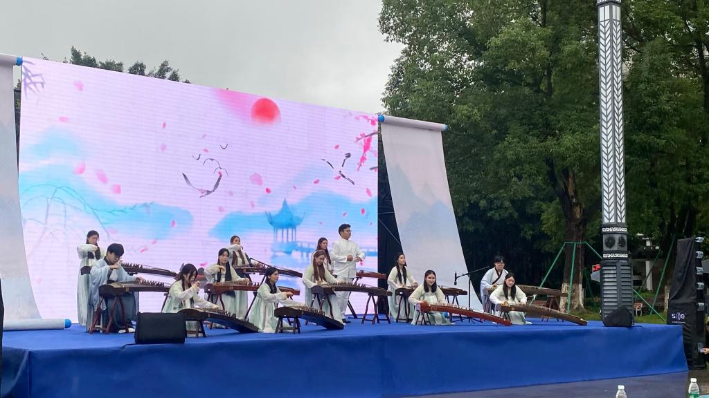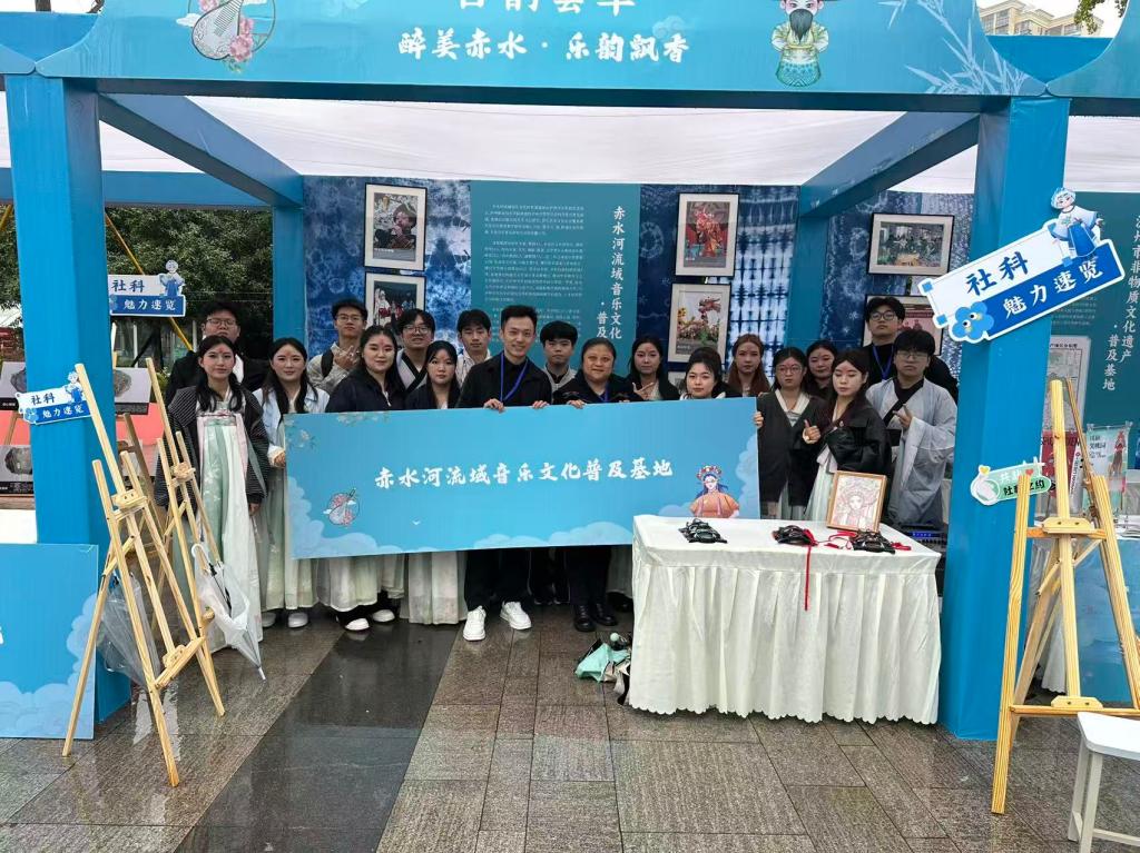 2025年10月21日上午,由四川省社会科学界联合会指导,川南渝西多地社科联联合主办的“川南渝西社科普及成果交流暨泸州市第二届社科普及集中服务活动”在江阳公园隆重举行。泸州赤水河流域音乐文化普及基地组织师生团队参与活动,通过古筝演奏与泸州民歌演唱等节目,为现场观众呈现了一场融合传统韵味与地方特色的音乐展演。