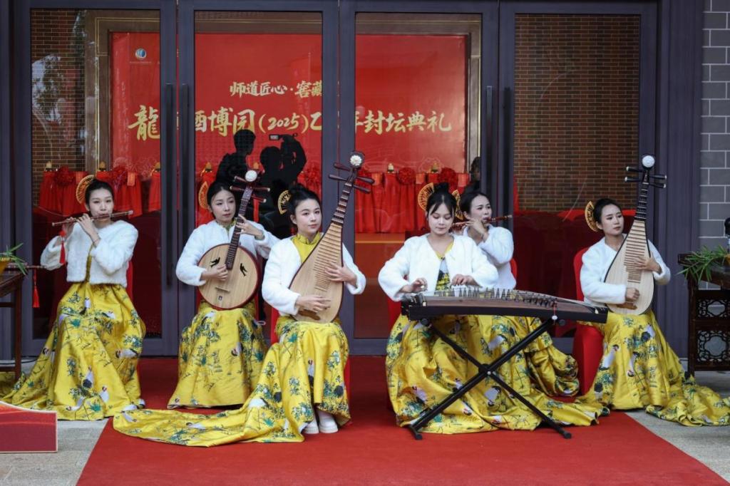封坛环节,学生们以酒歌民乐传唱传统,以吟诵酒道抒发情怀,在悠扬的韵律与铿锵的辞章中,展现传统文化的当代活力。随后,嘉宾与师生共同上前,小心翼翼封存酒坛——坛中封存的,不仅是醇厚的美酒,更是千年酿造技艺的延续,是酒道文化的薪火相传。这一时刻,既让学生们加深了对酿酒职业的敬畏之心,更点燃了他们投身传统产业创新发展的理想之火,让“传承不守旧、创新不忘本”的信念在心中扎根。