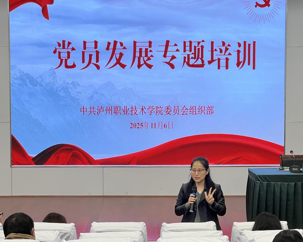 为进一步夯实学校基层党建工作基础,全面提升党务工作者的政治素养与业务能力,确保发展党员工作流程规范、标准统一、质量过硬,11月6日,中共泸州职业技术学院委员会组织部在学校萧秋厅开展党员发展工作专题培训。各基层党组织全体党务工作人员齐聚一堂,共同参加了本次兼具政策性、指导性与实操性的专题学习。