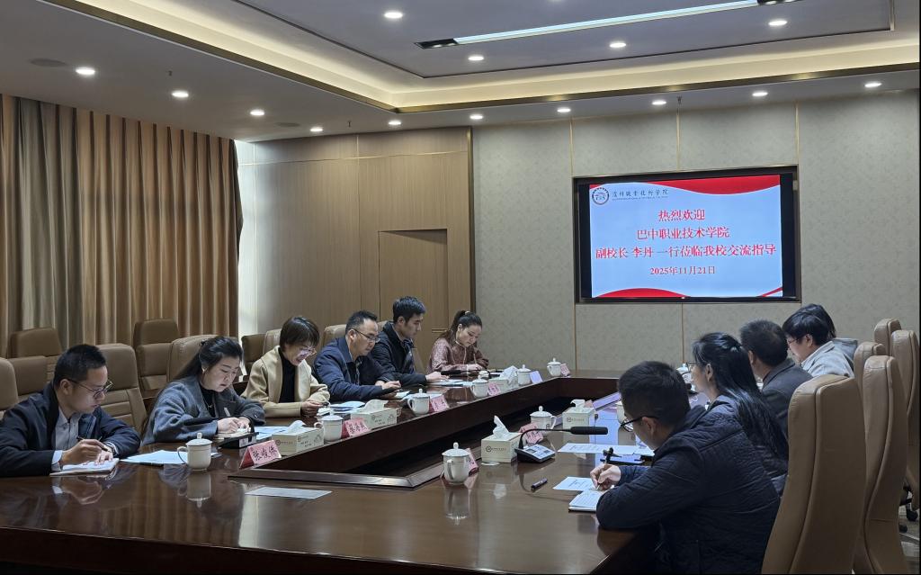 11月21日下午,巴中职业技术学院副校长李丹一行到访我校开展调研交流。交流会在云台校区8419会议室举行,学校党委副书记熊剑出席并主持调研交流会。