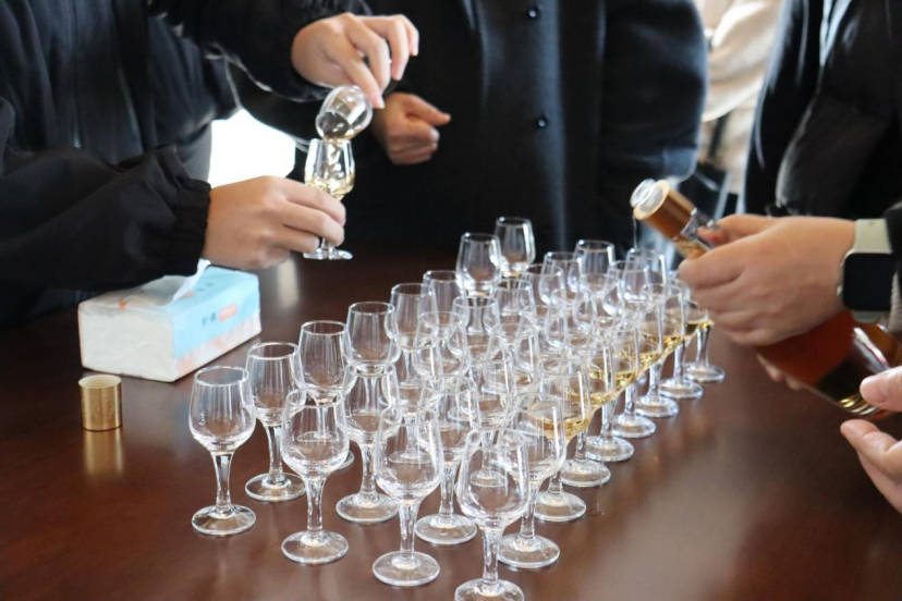 在陶坛库现场教学环节,学员们对不同香型白酒成品进行了专业品鉴。通过观色、闻香、品味,大家进一步辨析了各香型的风格特征与品质差异,实现了从原料、酿造到风味成型的全产业链知识贯通。