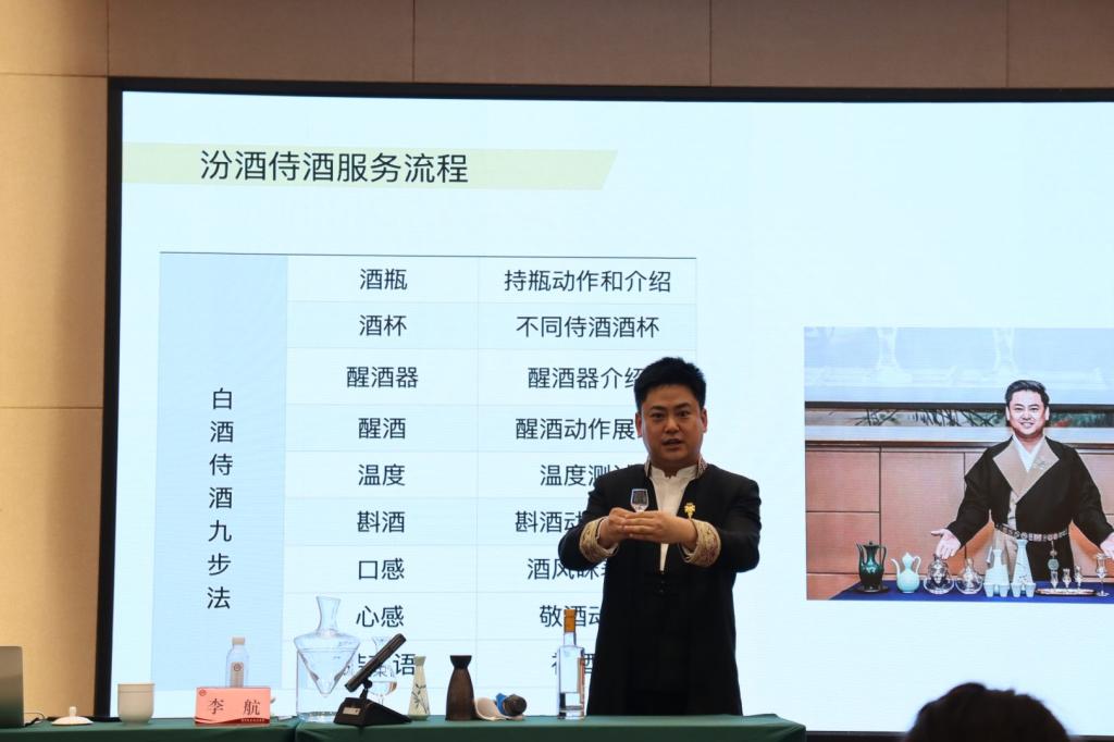 讲座中,李航从白酒的香型特征、温度把控、侍酒流程,逐步延伸至饮用场景与文化渊源,系统解析了白酒在餐饮搭配中的实际运用逻辑。他结合不同地域的酒体风格与工艺特点,进一步阐述了侍酒服务中的着装规范与器具选配原则,助力学员构建从理论到实践的白酒侍饮知识体系。