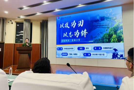 历经各二级学院层层选拔,40名优秀选手脱颖而出、齐聚决赛现场。比赛中,选手们围绕“职业目标定位”“学习实践行动(岗位胜任力)”“优化改进(发展潜力)”三大核心环节,通过生动的PPT展示与沉稳的现场答辩,全面展现了当代大学生对职业发展的深度思考、清晰规划与青春风采。评委团紧扣行业适配度、规划可行性、岗位竞争力等核心维度精准提问,既考察选手的专业素养与实践积累,也检验其应变能力与职业视野,现场互动热烈、亮点纷呈。