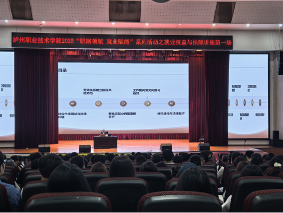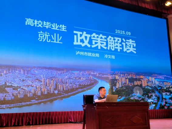 为切实破解毕业生就业政策困惑、强化权益保障意识,助力2026届毕业生顺利实现高质量就业,2025年9-12月,学校联合泸州市人力资源和社会保障局等单位,精心策划开展“职路领航・就业赋能”系列就业服务活动,累计举办大学生就业政策解读、就业权益与保障专题讲座5场,覆盖全校4000余名毕业生,构建起校地协同、精准高效的就业服务新格局。