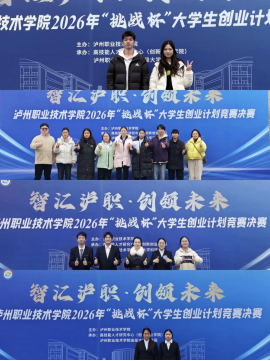 1月20日, 我校成功举办“智汇泸职·创领未来”2026年“挑战杯”大学生创业计划竞赛校赛决赛,经过激烈角逐,最终评选出一等奖7项、二等奖14项、三等奖13项、优秀奖30项。决赛分别在求是厅、路演厅同步进行,比赛由高技能人才研究中心(创新创业学院)、省级大学科技园组织承办。