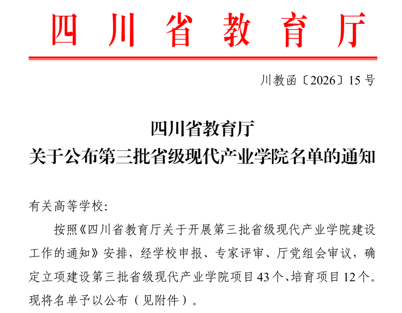 近日,四川省教育厅公布第三批现代产业学院名单,学校联合成都纵横自动化、泸州低空经济产业发展公司、中国兵器人才研究院等多家单位申报的“无人机应用产业学院”成功入选,成为学校深化产教融合、赋能区域低空经济发展的重要里程碑。