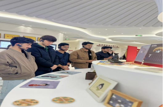 活动首站,留学生们步入龙涧酒博园陈列馆,通过图文展板、实物陈列与多媒体互动,系统了解了中国白酒的起源、流派及酿造习俗,同时对比学习了苏格兰威士忌、法国白兰地、俄罗斯伏特加等全球蒸馏酒的风土特点。在文创展台前,来自孟加拉国的留学生阿拉法特表示“这些文创产品把酒文化变成了可触摸的记忆,很有意思。”